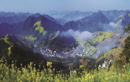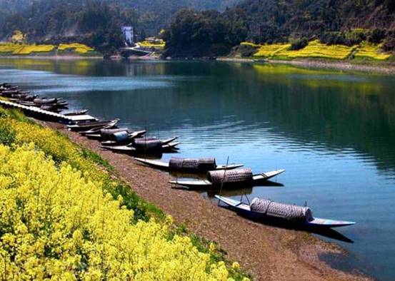 新安江山水画廊:素有“东方多瑙河”之称的新安江穿行而过,两岸徽派民居点缀其间,一年四季,景色各异,好似一幅流动的山水画卷。